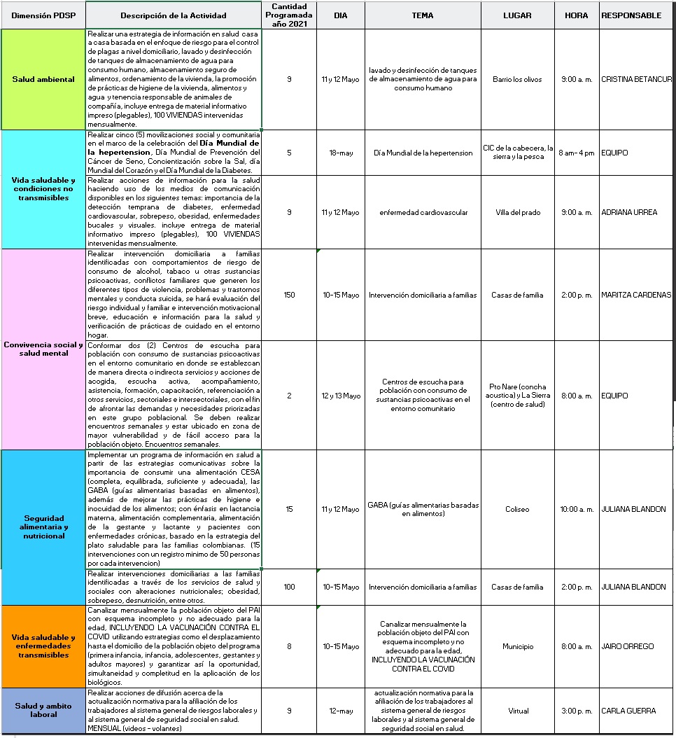 El desarrollo de este programa incluye un sin número de actividades, intervenciones y procedimientos que se desarrollan con el fin de promover la salud y la calidad de vida, la prevención y control de riesgos y daños en salud de alta externalidad, logrando así contribuir al cumplimiento de las metas prioritarias en salud.
